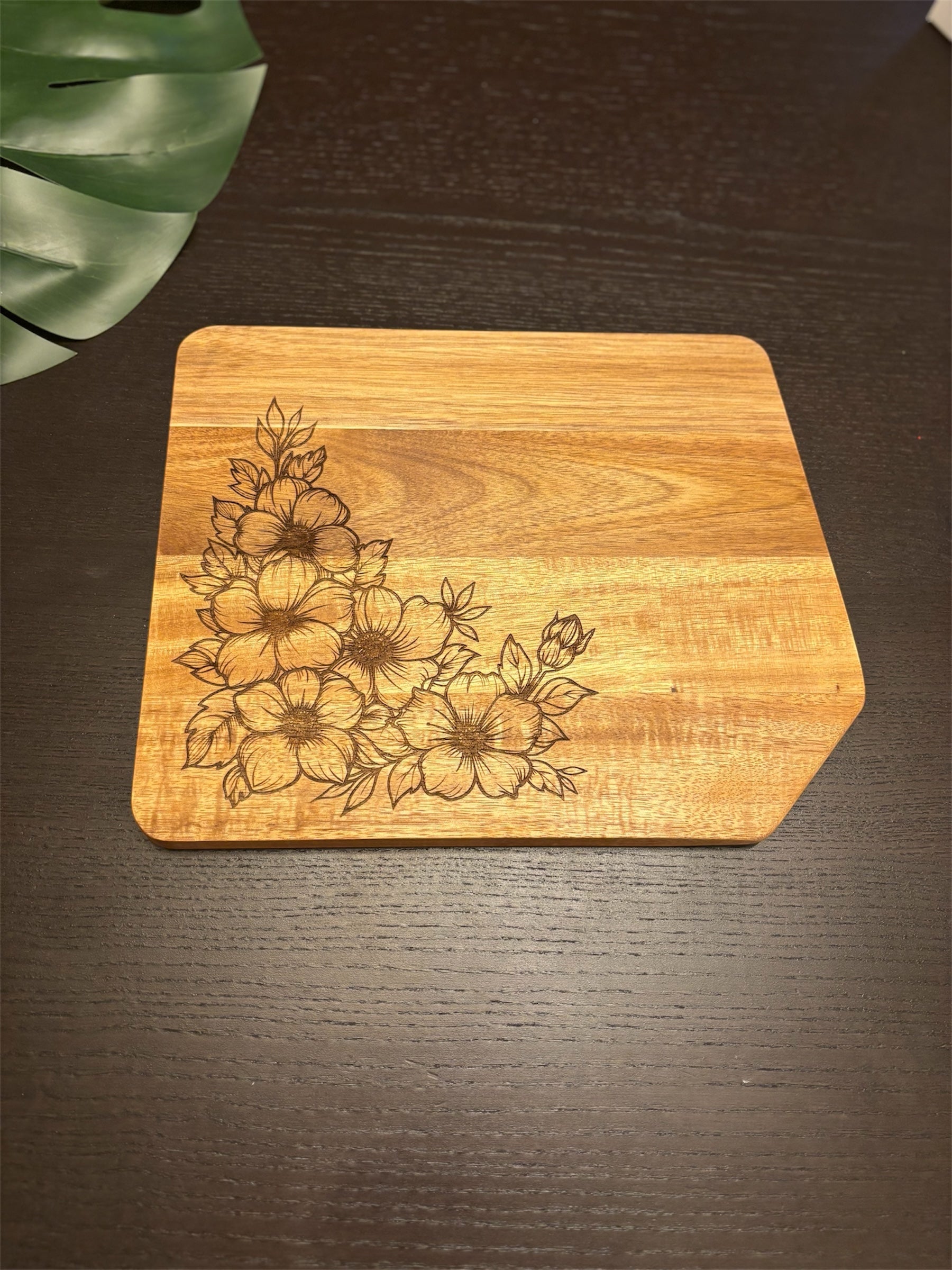Engraved Acacia wood chopping board, perfect for serving cheese or appetizers, adding a unique and stylish touch to your dining table.