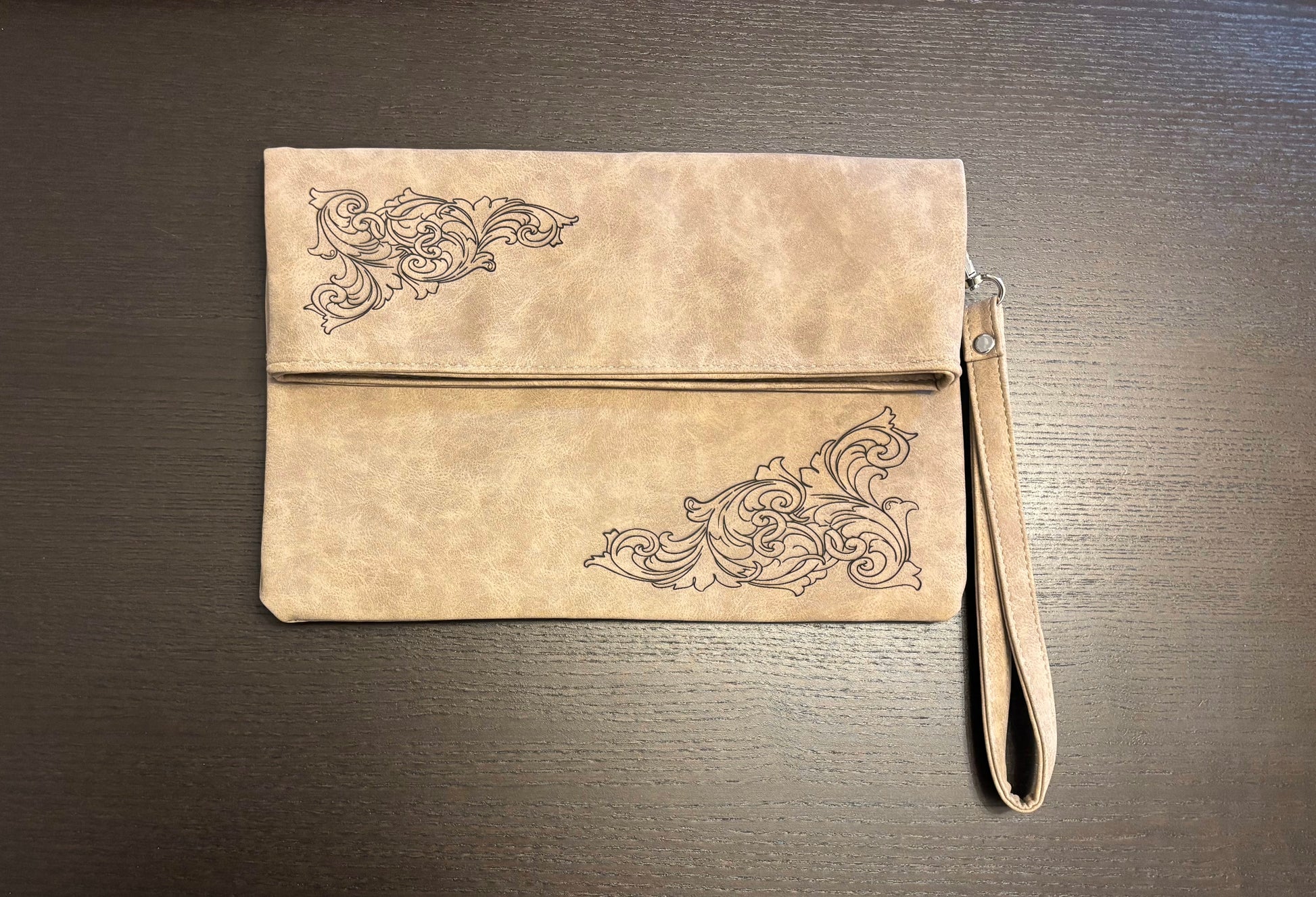 One-size PU leather clutch bag, elegantly engraved with a detailed pattern that adds a unique and stylish touch — perfect for both everyday use and special occasions.